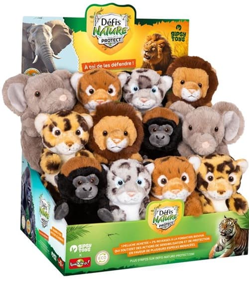 s’associent en créant les « Défi nature protect » : Une collection de peluches éco conçues, à partir de matières 100% recyclée, dans laquelle 6 espèces animales menacées sont mises à l’honneur.