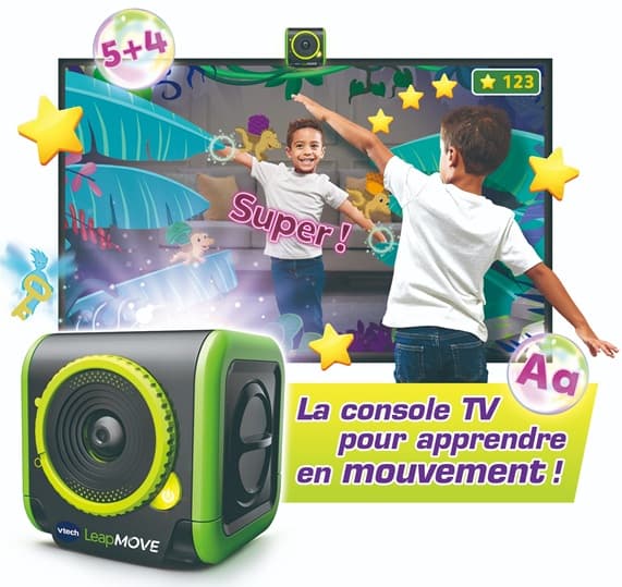 La console TV nouvelle génération pour apprendre en bougeant. Pas de connexion internet. 25 aventures et jeux. Plus de 20 apprentissages. De la maternelle au CM2.